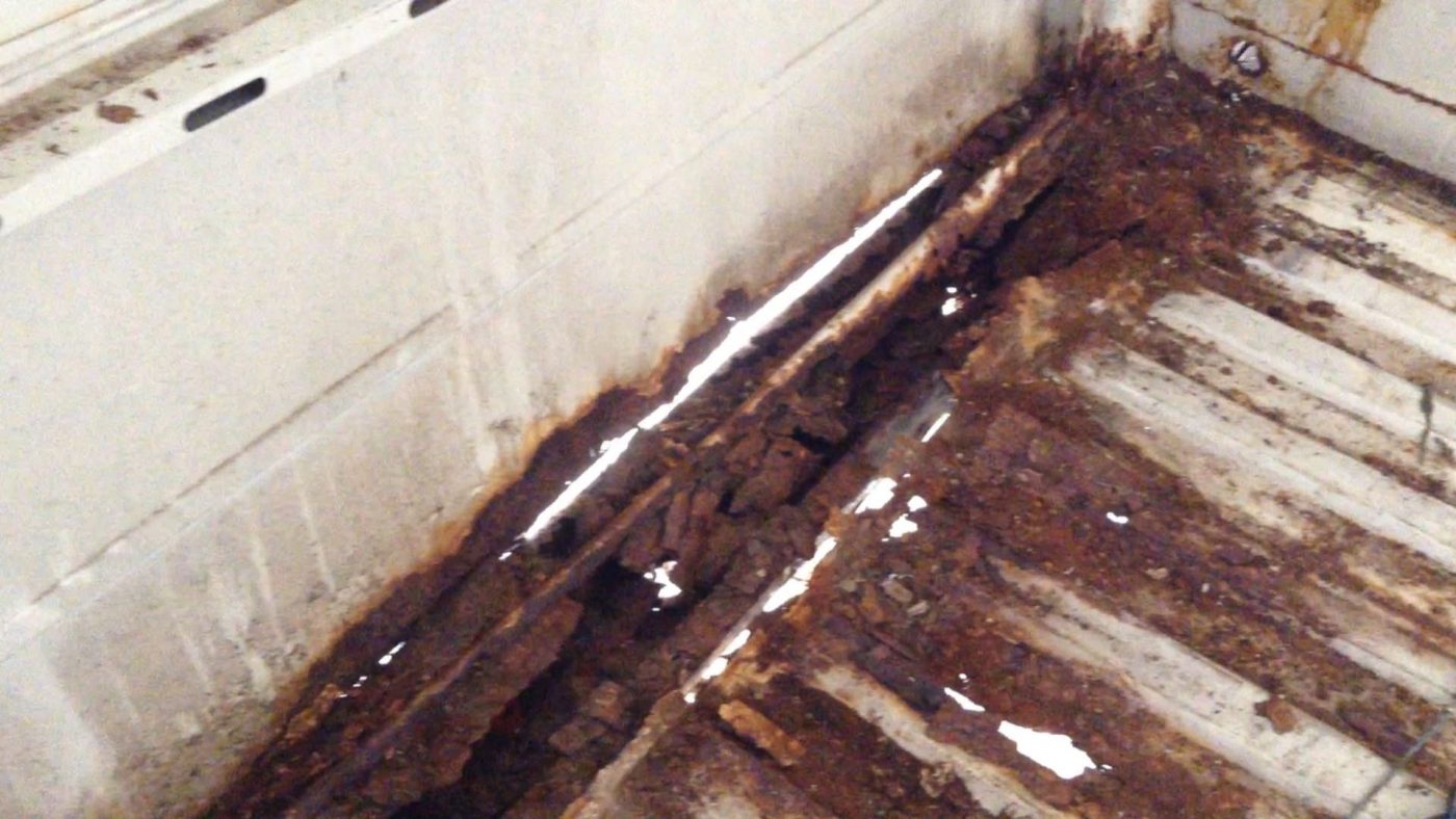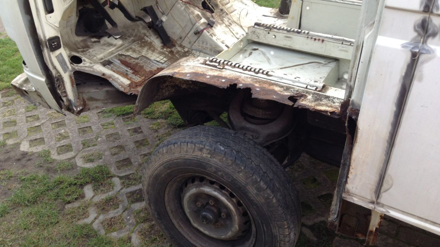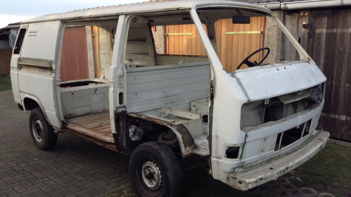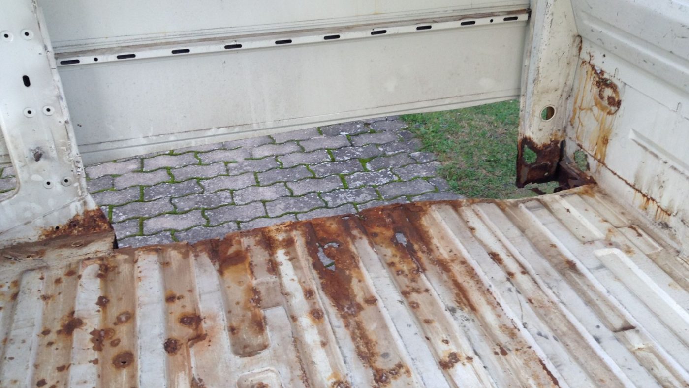Kannst du dich noch an das erste Bild vom VW T3 erinnern, wo er auf dem Trailer stand? Dort sah er von außen ganz gut aus. Nachdem ich innen die Verkleidungen entfernt hatte, kam der große Schreck.
